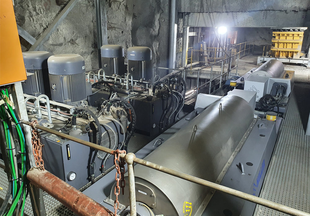 Kompaktowa wirówka o długości 3,5 m z pionowymi wylotami, zaprojektowana do instalacji w ciasnych komorach maszyn TBM (Tunnel Boring Machine). Zintegrowany system recyrkulacji płuczki utrzymuje lepkość poniżej 45 s Marsh, zapewniając optymalne parametry płuczki wiertniczej.